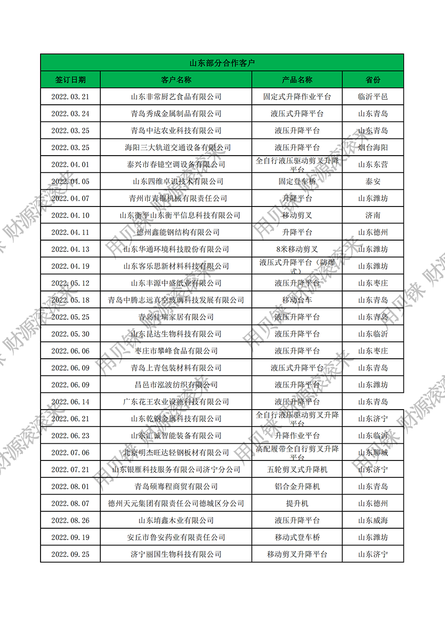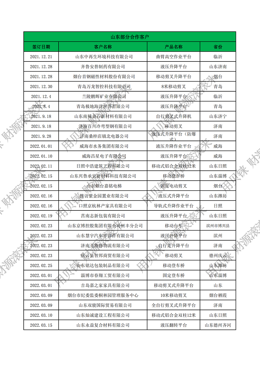 山東部分客戶3