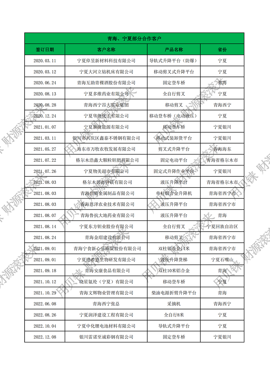 青海、寧夏部分客戶