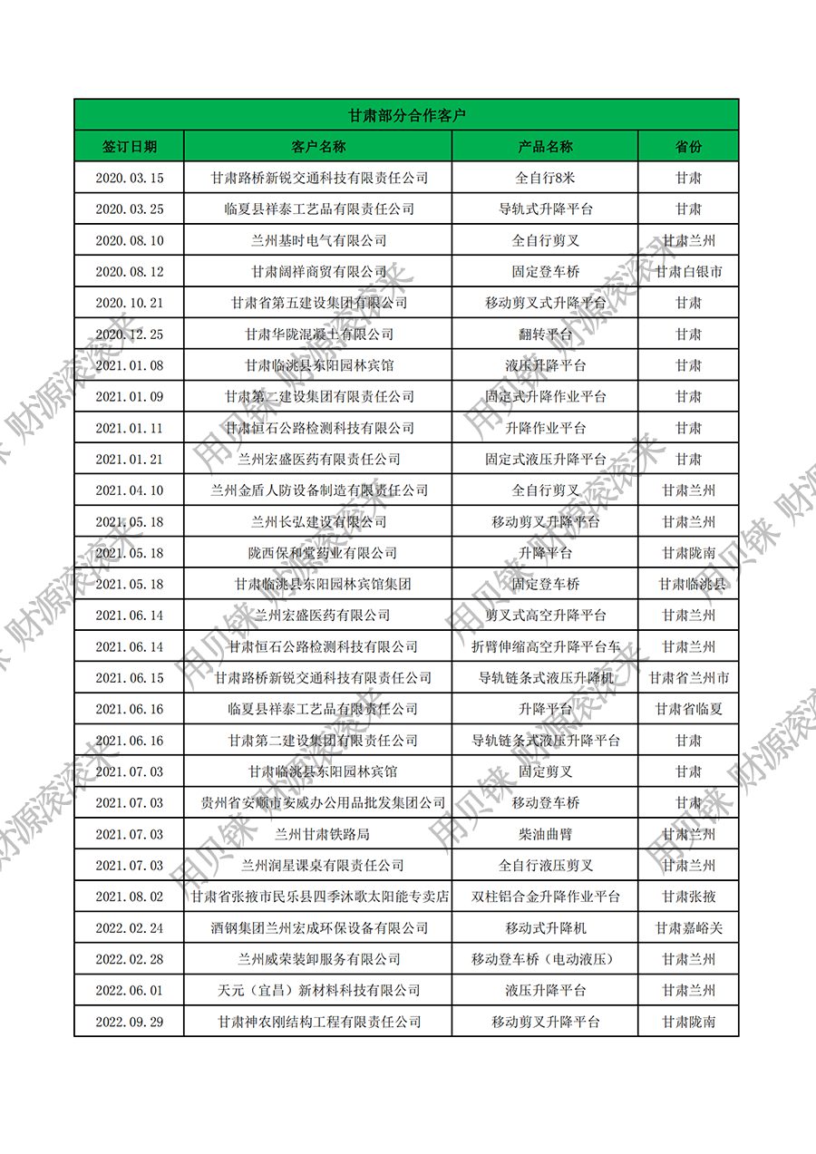 甘肅部分客戶