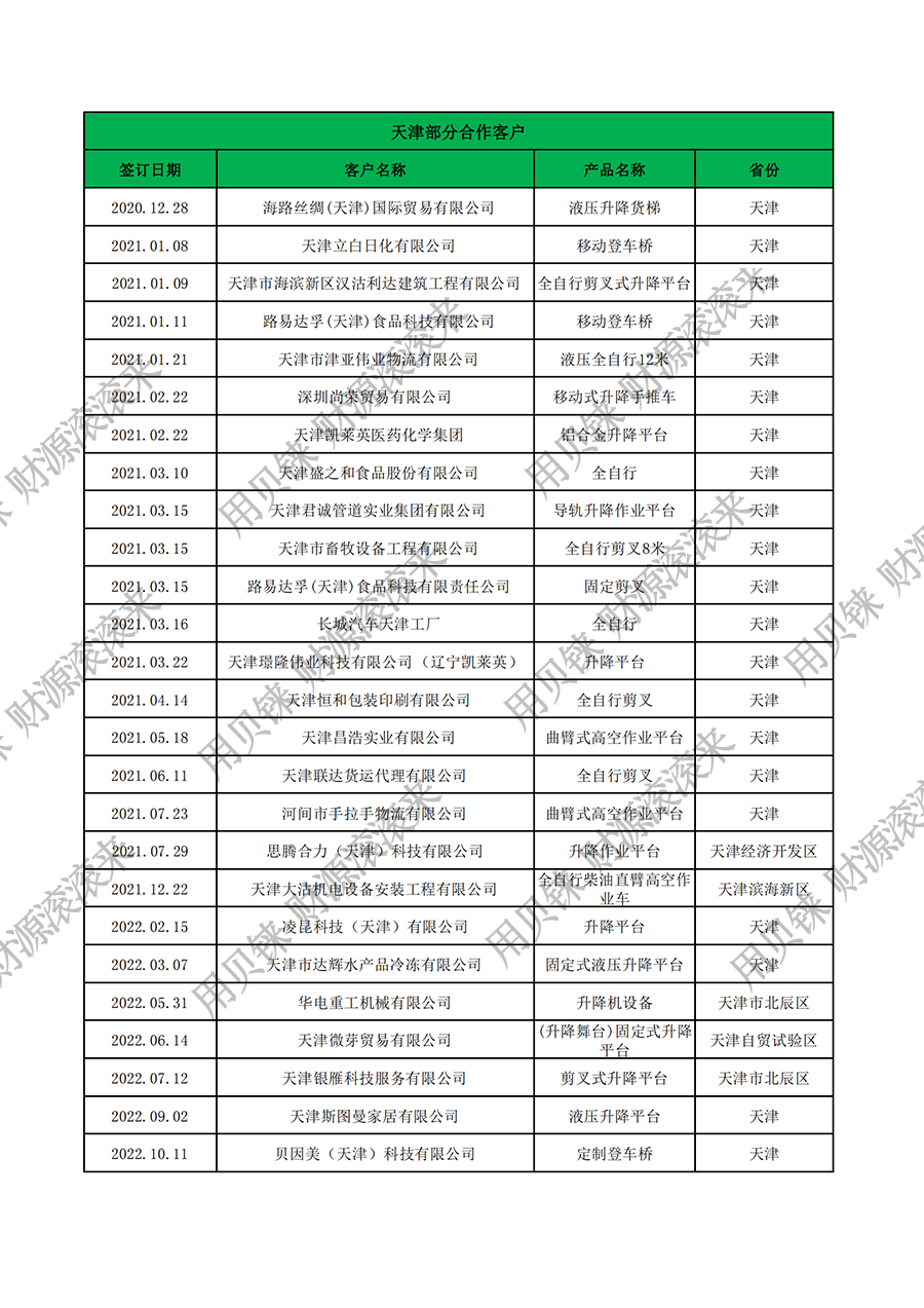 天津部分客戶