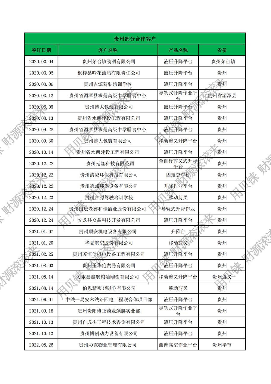 貴州部分客戶