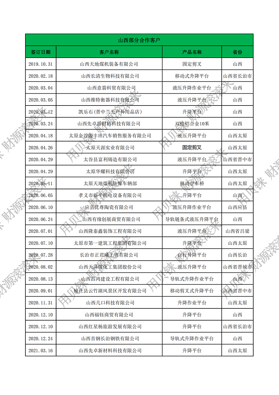 山西部分客戶