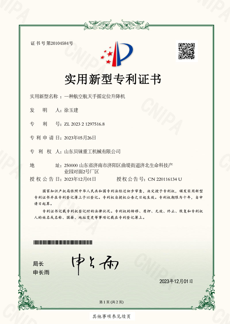 一種航天航空手搖定位升降機